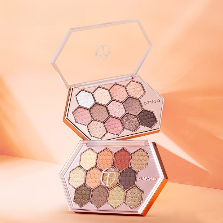 A tray of various textures to produce a multi-layered, eye-catching, three-dimensional makeup.