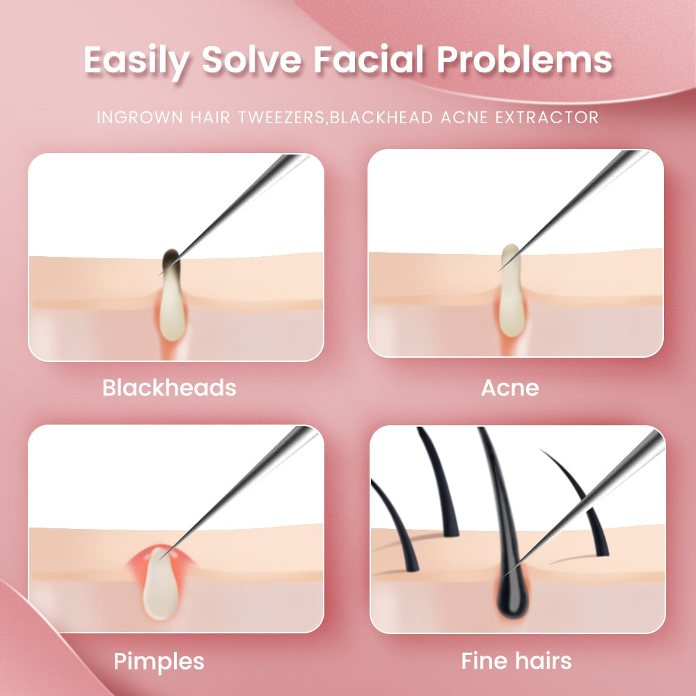The blackhead removal tools Ultra-fine Tweezers penetrate deeply into pores, combat finer acne, and are also appropriate for novices.