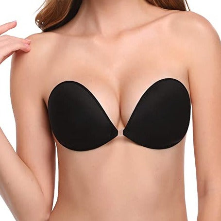 This strapless push-up bra or a stick-on bra is reusable and easy to clean; just dampen the sticky area with water and a mild detergent before allowing it to air dry. Make sure the surface is clean before using it again; plastic sheets can be reattached to deter dirt.
