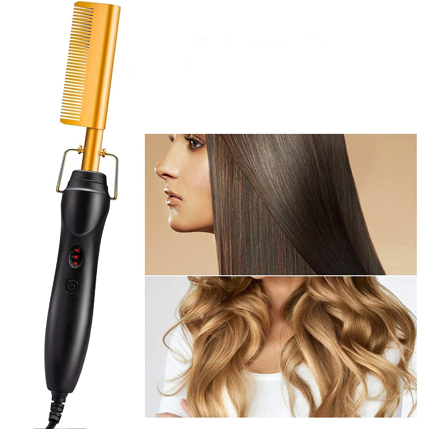 The 2-in-1 Hot Comb Hair Straightener utilizes electric heating technology to quickly heat the comb's teeth, which can then be used to straighten both hair and beards. The anti-scald feature ensures safe usage, allowing you to achieve sleek and stylish looks with ease and confidence.