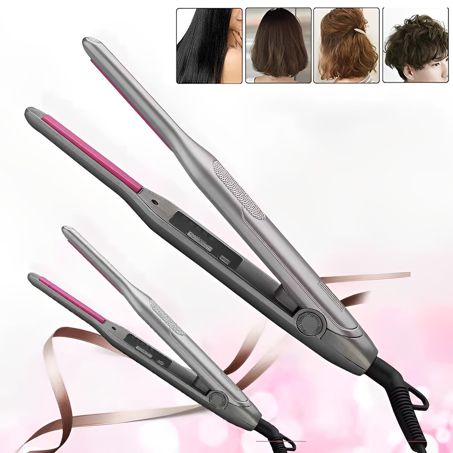 Look no further than the 2-in-1 Professional Hair Straightener and Curler Ceramic, designed to give you sleek, smooth locks or bouncy, voluminous curls in minutes.