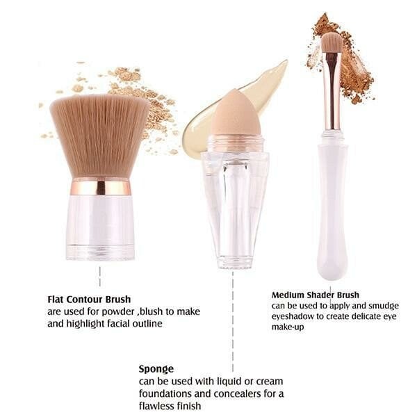 This portable makeup brush is designed to be compact and travel-friendly, allowing you to take it with you wherever you go. No need to carry multiple brushes or tools; the 3in1 design saves space and ensures convenience on the go.