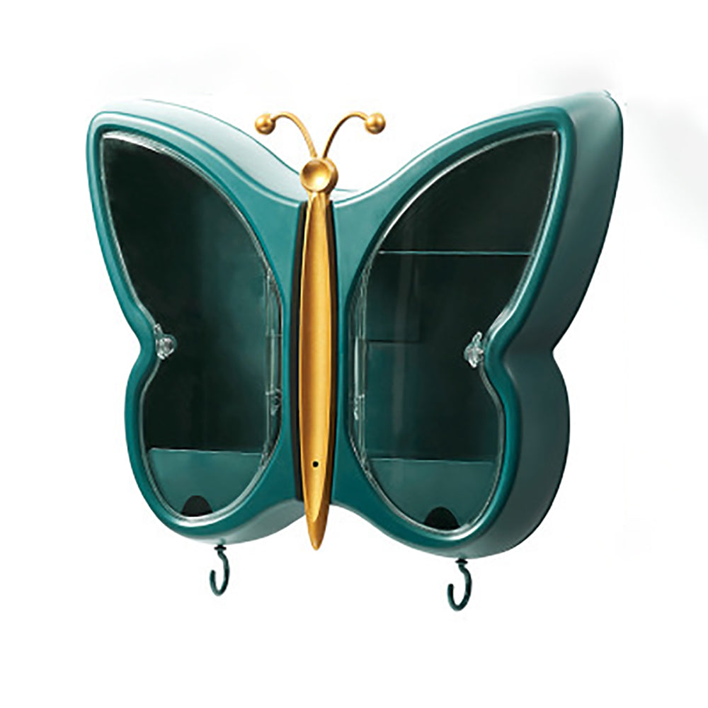Our Jewelry Cosmetic Storage Box operates by providing multiple compartments and hooks within a butterfly-shaped design. The user can easily hang it on the bathroom wall, allowing for efficient organization and storage of various jewelry, cosmetics, skincare products, and accessories.