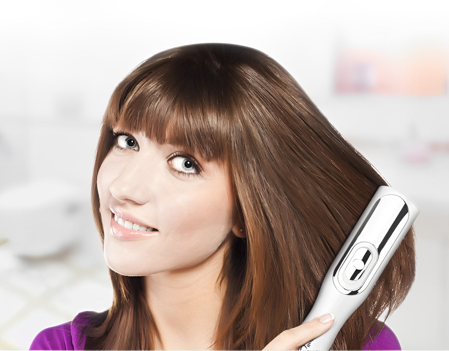The ceramic straightening brush can straighten wavy and curly hair while delivering natural healthy and silky results, suitable for all hair types.