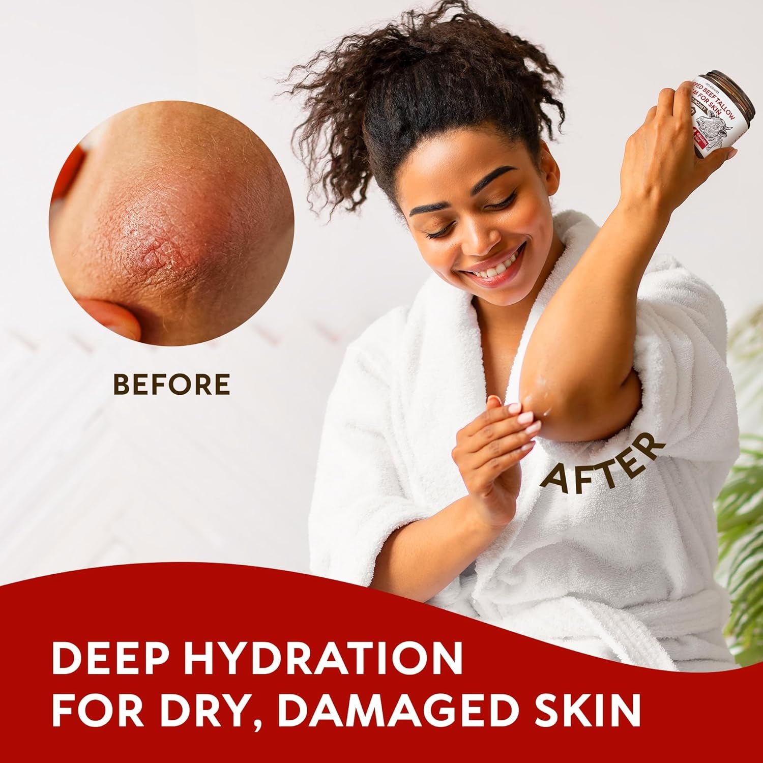 - =, Grass-Fed Beef Tallow: Absorbs quickly into your skin without clogging pores, thanks to its skin-identical lipid profile.