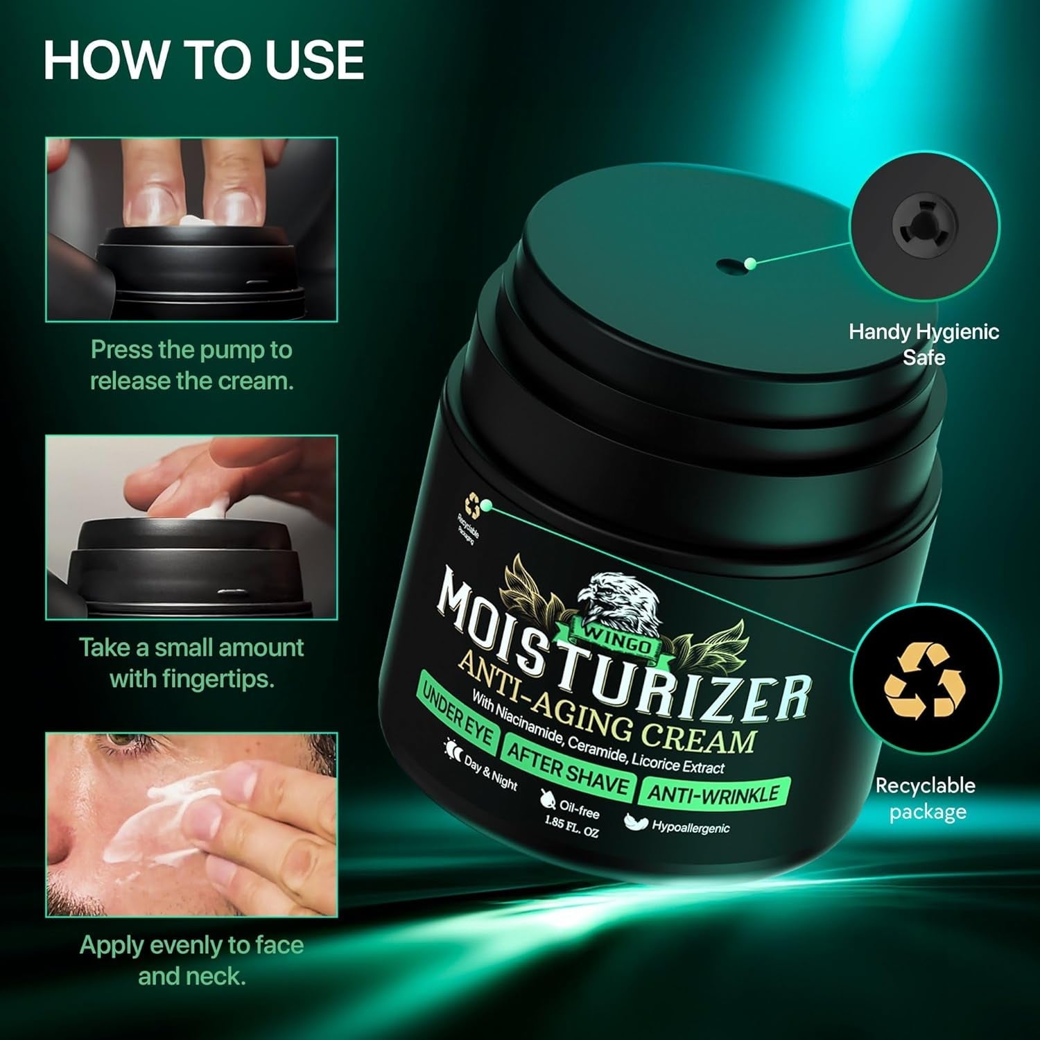 Wingo Mens Face Moisturizer Anti-Aging Cream 55ml - Oil-Free Quick Absorbing Moisture