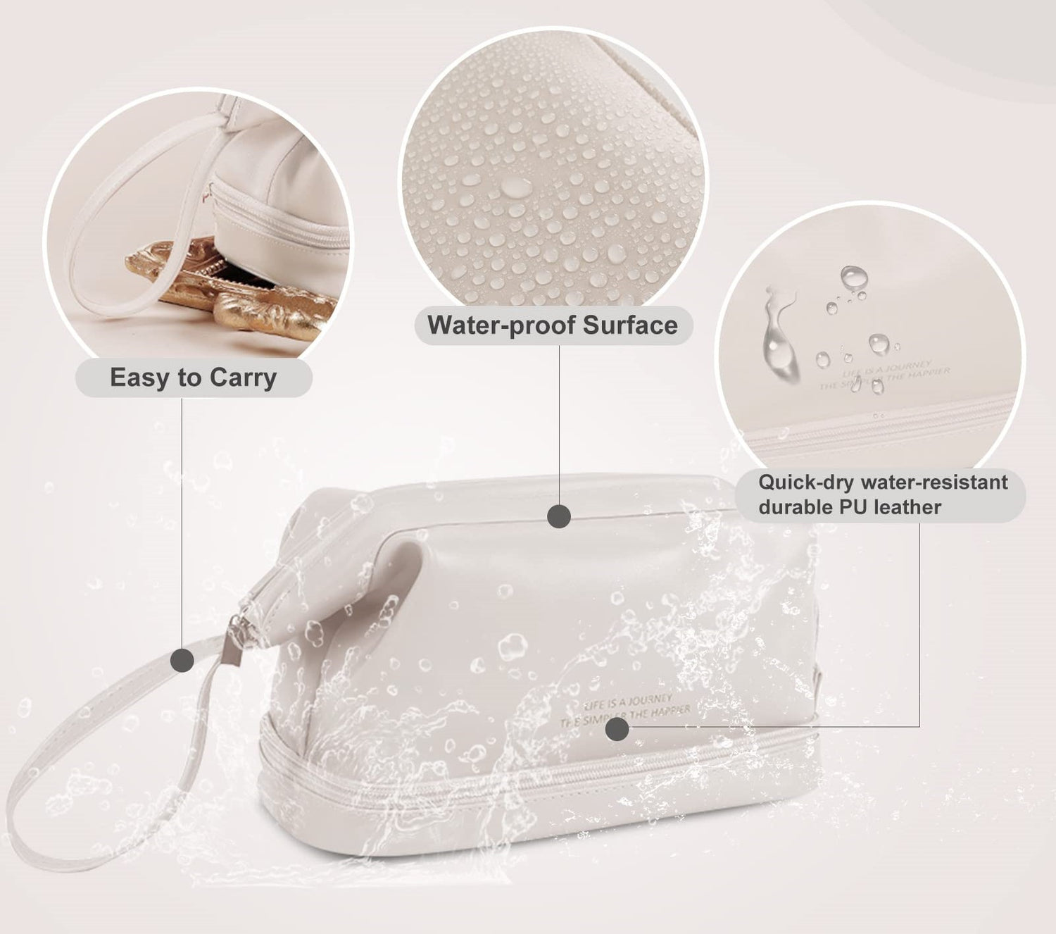 - When needed, unzip the bag and access your cosmetics and toiletries easily and conveniently.